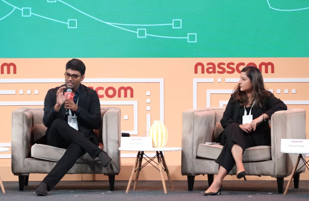 The Fireside Chat: Is India Still Building Startups, or Finally Building Technology?, moderated by Srikanth Velamakanni Vice Chairperson, Nasscom Naiyya Saggi Founder, EDT Ankit Mehta CEO & Whole-Time Director, ideaFor focused on the evolution of the Indian startup ecosystem from focusing on business model innovation (speed, scale, consumer apps) to driving deep technology innovation (IP, core tech, global systems).