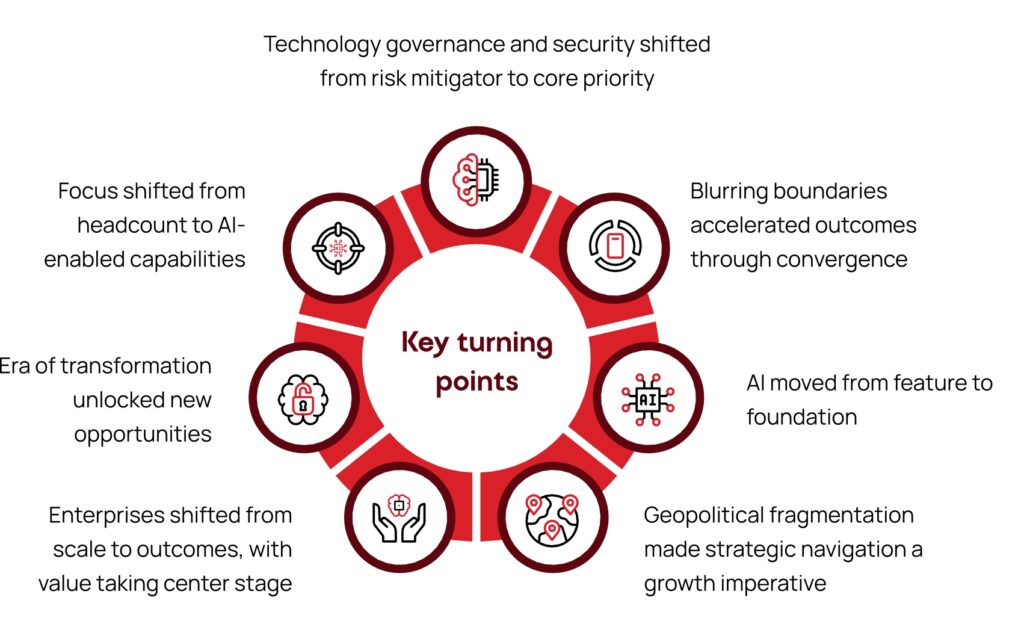 Enterprises face a shifting landscape where emerging technologies like AI drive disruption, challenging traditional stability �. The discussion emphasized converting technological changes into measurable business outcomes through strategic reinvention.