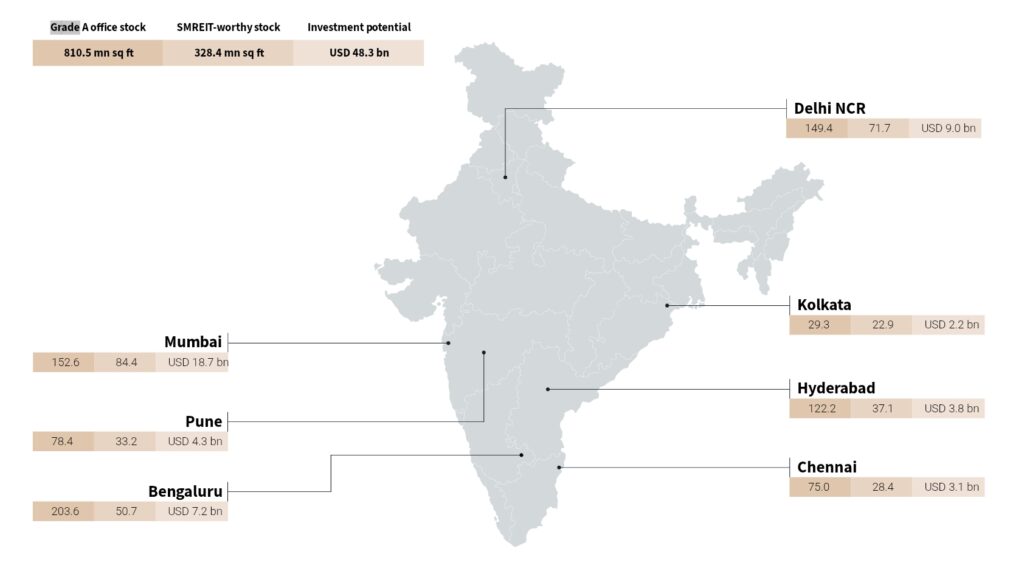 The top three cities—Bengaluru, NCR, and Mumbai—account for about 60% of this supply, positioning India as the world’s fourth-largest office market by size.