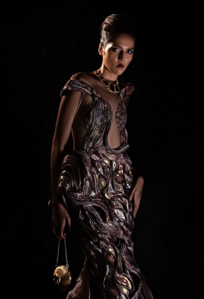 Embracing imperfection: In the Mutation chapter, Aggarwal explored asymmetrical shapes and disruptive textures, reflecting the unpredictable nature of evolution. This element resisted fashion’s obsession with perfection, inviting the audience to see beauty in chaos.