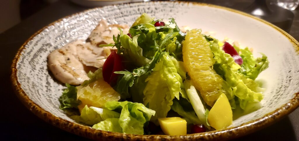 Packed with succulent chicken, vibrant fruits, and nutritious greens, this invigorating salad offers a wholesome, well-balanced meal that nourishes both body and spirit.