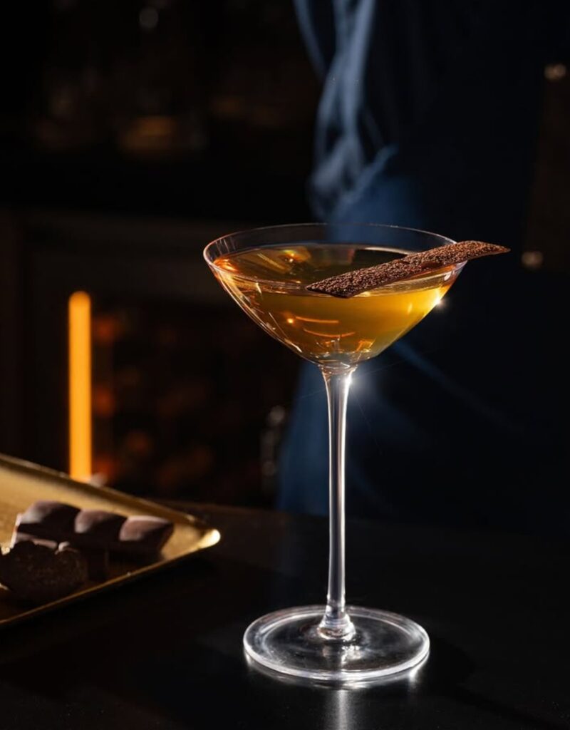 As you sip, your palate journeys from the initial velvety chocolate warmth, through layers of aromatic coffee and mysterious truffle earthiness, to a refreshing citrus finish that cleanses and invites the next taste. It’s indulgent yet refined, familiar yet surprising—a cocktail that feels like a special occasion in a glass, perfect for those who appreciate bold flavors and aren’t afraid to venture beyond the ordinary into truly memorable territory.