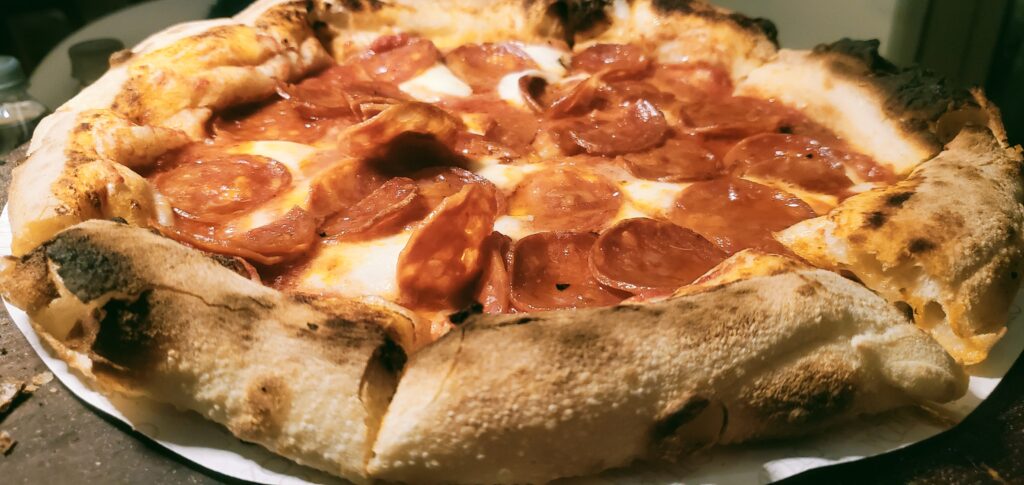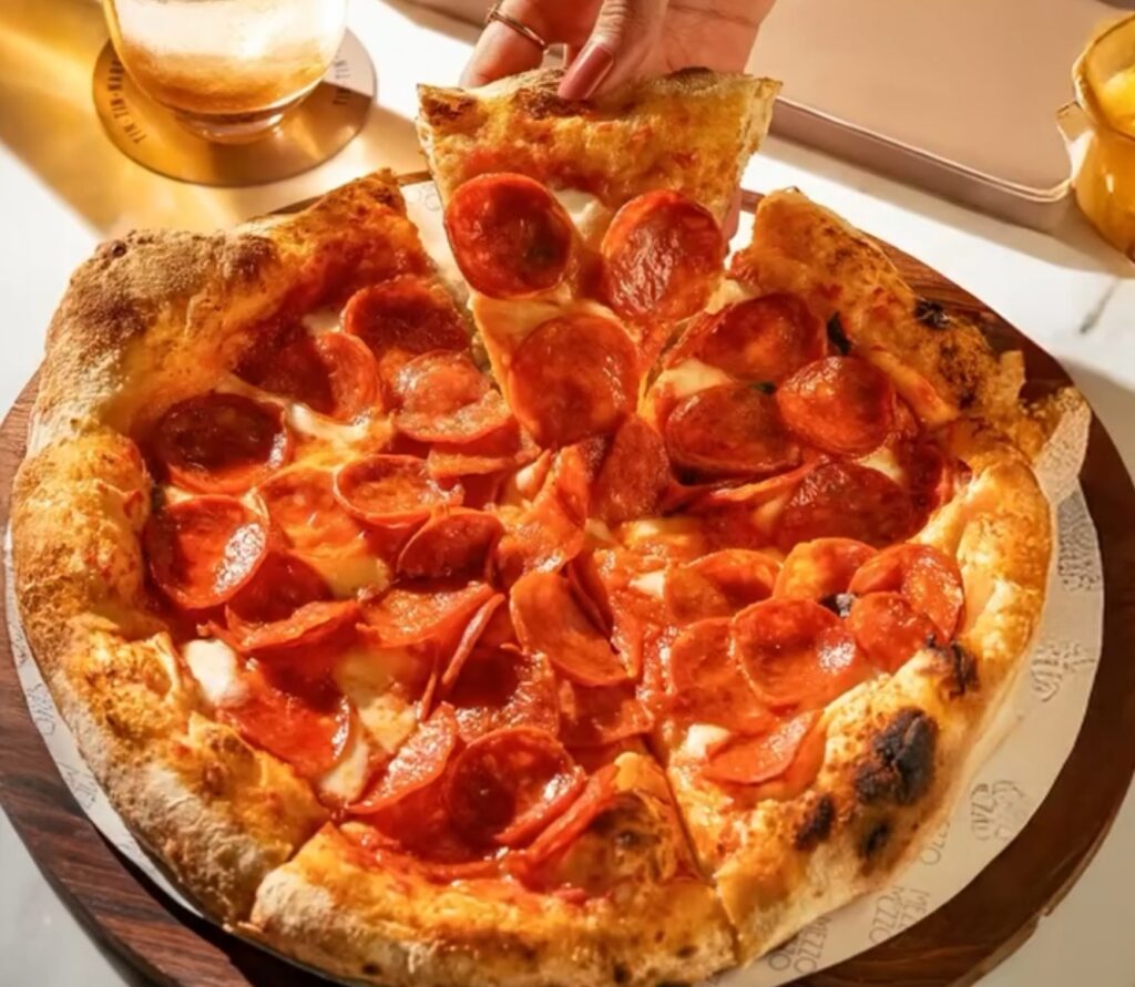 The pepperoni that adorns the Mezzo Mezzo’s Pepperoni Pizza is a culinary masterpiece in its own right. Carefully selected and cured, each slice of pepperoni carries an intense, smoky flavor that perfectly balances the richness of the buffalo cheese and the tanginess of the tomato sauce. The succulent texture and subtle spiciness of the pepperoni make it a standout ingredient that elevates the pizza’s overall taste profile, creating a satisfying and irresistible dish that is sure to delight pizza lovers everywhere.
