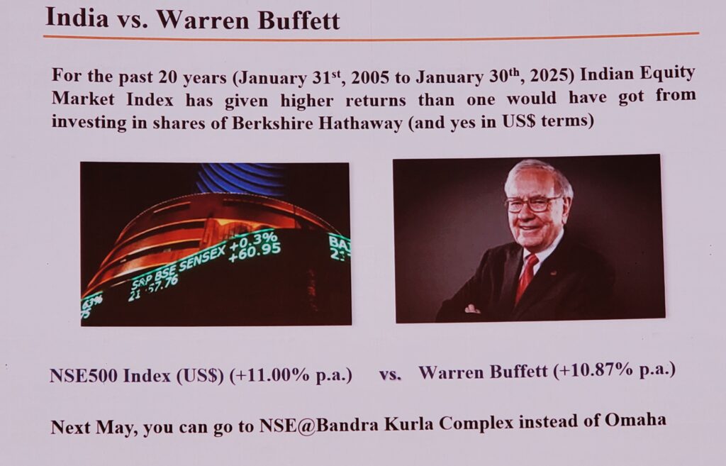 This comparison highlights the impressive growth and potential of the Indian stock market, showcasing its ability to generate significant returns even in comparison to one of the most successful investors of all time.